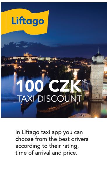 We wish your visit in Prague will be as pleasant as possible, so before the start of each event we will present you with a card ‘100 CZK discount’ on the most reliable taxi in Prague – Liftago.